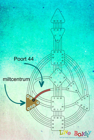 Poort 44 is de energie voor alertheid. In poort 44 leeft een instinctief bewustzijn dat mee komt uit het verleden. Ons eigen verleden, maar ook het verleden dat via ons DNA meegeërfd is van eerdere generaties.