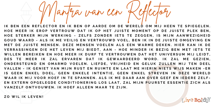 Ik heb een mantra geschreven voor Reflectors. Een mantra die je als Reflector kan helpen om in je kracht te blijven en een leven te leiden zoals dat voor jou bedoeld is.
